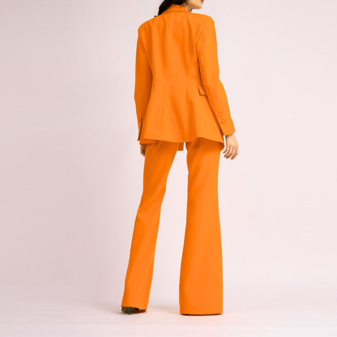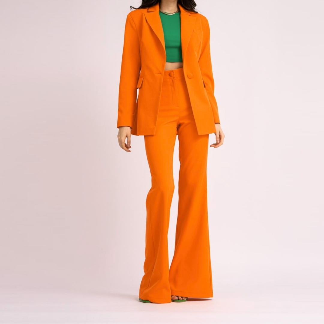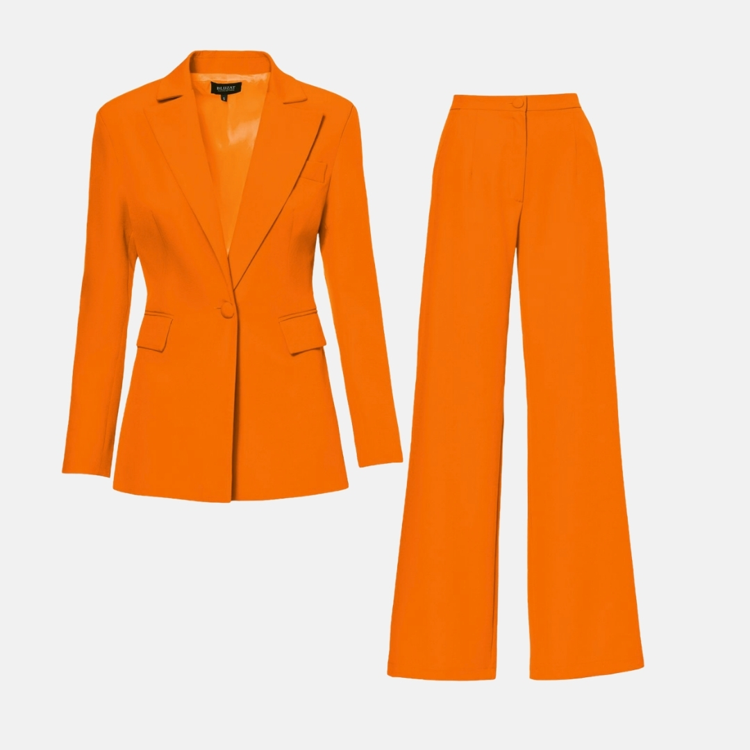 Women’s Orange Slim Fit Blazer Sets Single Button Flap Pocket Blazer Set
